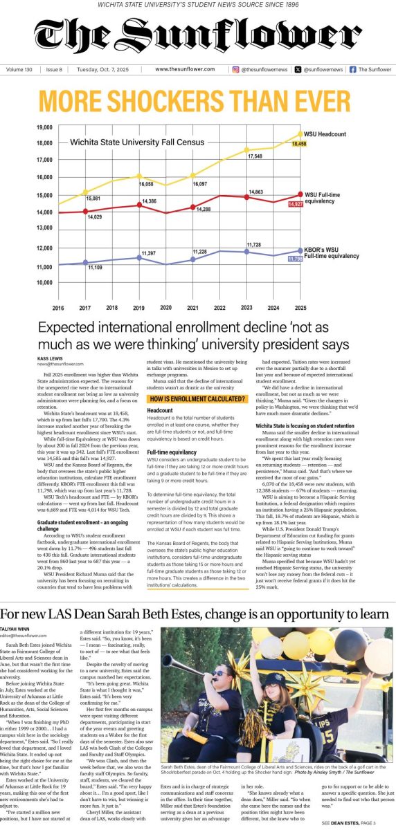 Fall 2025 enrollment was higher than Wichita State administration expected. The reasons for the unexpected rise were due to international student enrollment...