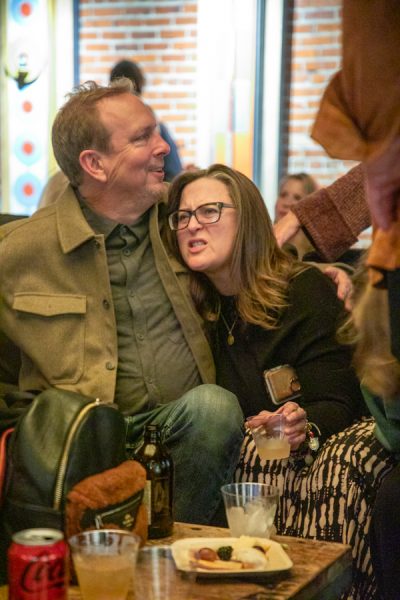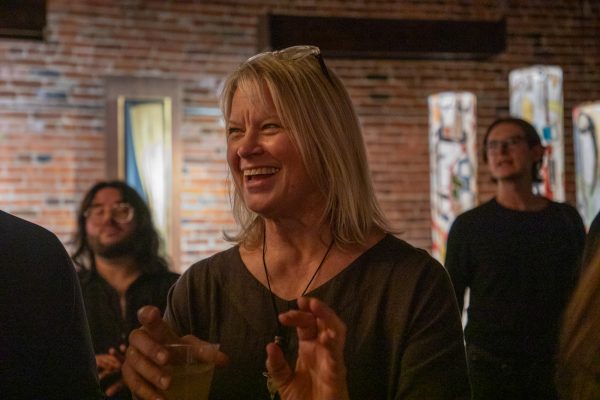 The dual gallery space was packed shoulder-to-shoulder as a larger crowd, made up of family and friends of the couple, occupied the space from when the doors opened at 6:30 p.m. to the end of the night.